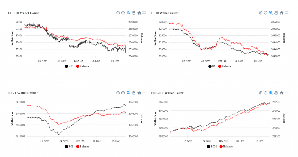 Large holders are waiting, mid-tier holders are selling, small holders are exiting, and the smallest wallets are entering.
