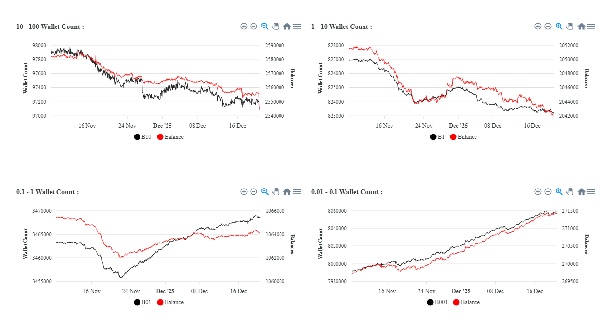 Large holders are waiting, mid-tier holders are selling, small holders are exiting, and the smallest wallets are entering.